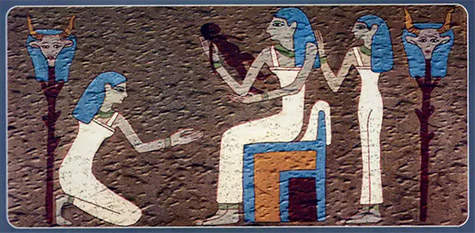 An image of how a birthstool may have been used is depicted on this second-millennium B.C.E. brick from the Egyptian Middle Kingdom.
