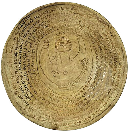 Over 2,000 inscribed clay bowls dating from the 5th–7th centuries C.E. have been unearthed in former Sasanian[12] Babylonia (now modern-day Iraq) when Jews, Christians, and polytheists inhabited the land together.[13] These bowls contain incantations, many of them in Jewish Babylonian Aramaic, which ask for healing, help, or protection for individuals, and invoke various supernatural forces like demons and angels, as well as YHWH.[14]